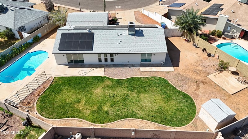 Listing details for 12649 Rosewood Ave, Phoenix, AZ 85029 : Opportunity for buyers looking for space, upgrades, and a backyard built for Arizona living. This North Phoenix home offers convenient access to I 17, shopping, dining, parks, and entertainment. Enjoy nearby Cave Creek Park with mountain views, local restaurants, and family fun at Castles N Coasters, with Arizona State University West Campus and everyday essentials within a short drive. Inside features a generous split floor plan with a fresh modern color palette. Clean white tones are paired with wood style plank flooring in the living room and a matching decorative beam that creates a warm focal point. A den or office offers a great work from home option. The updated kitchen includes granite countertops, breakfast bar seating, and refreshed cabinetry. Outside enjoy a sparkling pool, oversized 12,000+ sq ft lot, large RV gate, and paid off solar. Buyer to verify all facts and figures.