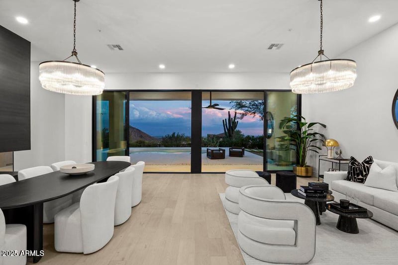 Listing details for 12657 135th St, Scottsdale, AZ 85259 : Full Remodel Designed by award-winning Candice Quinn of London Pierce Design, this reimagined single-story residence beautifully balances modern luxury with timeless craftsmanship. Wide-plank white oak floors, custom millwork, and a striking floating fireplace create an inviting atmosphere that feels both refined and welcoming. Seamless indoor-outdoor living invites you to relax and recharge, with expansive multi-slide glass doors framing breathtaking city lights and mountain views. Resort-style amenities, including a Pebble Tec pool, built-in BBQ, and a second fireplace set the stage for effortless entertaining and memorable moments. At the heart of the home, the chef's kitchen inspires creativity with SOLLiD cabinetry, Calacatta quartz, Wolf, Sub-Zero, hidden scullery butler's pantry that keeps gatherings smooth and stress-free. A serene primary suite and a spacious laundry room add comfort, ease, and everyday convenience, making this home as livable as it is beautiful.