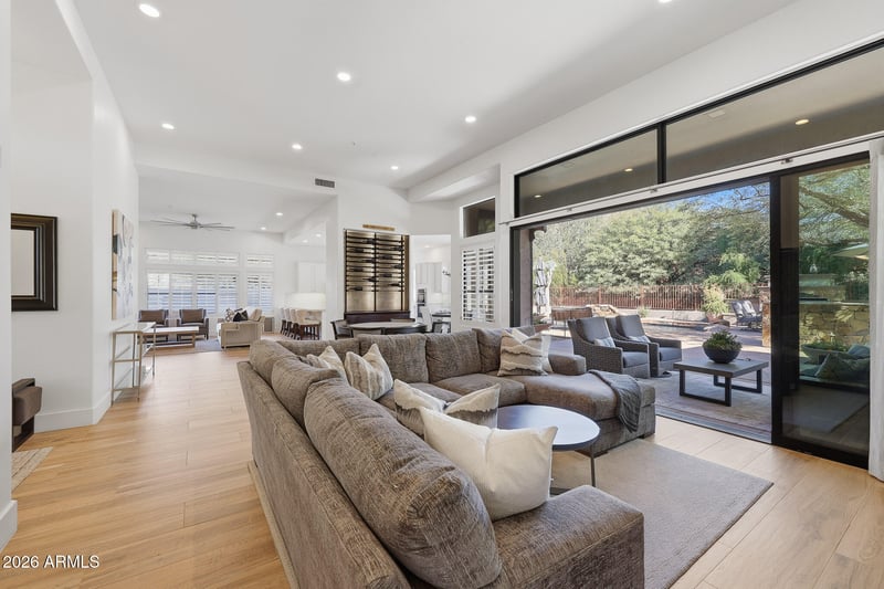 Listing details for 12677 113th Way, Scottsdale, AZ 85259 : Welcome to this beautifully updated 4 BD + Den | 2 BA | 2,686 SF premium CORNER LOT home with front and rear exposure MOUNTAIN VIEWS in the DOUBLE-gated community of Ancala West Estates. Nestled between historic Frank Lloyd Wright Taliesin West, McDowell Mountain Preserve, and Ancala golf course lies, this home is designed for seamless indoor-outdoor living, this home showcases a stunning 16-foot wall-of-glass slider that opens to your PRIVATE backyard oasis with NO neighbors directly behind! Ultimate privacy backed by beautiful natural desert landscaping beyond the backyard wall. The resort-style backyard is designed for making memories has stunning MOUNTAIN VIEWS amongst a Pebble Tec pool with water feature (2022), outdoor fireplace, Built-in BBQ kitchen with bar seating, Lion premium grill, Danby refrigerator and Lion cooler, artificial turf, flagstone hardscape, dog run and much more designed for both entertaining and relaxation that you may never want to leave home. Throughout this upgraded home you'll love wide wood-plank tile flooring, LED lighting, plantation shutters, custom fans, and a wine display wall with custom lighting. The bright chef's kitchen offers quartz countertops and island, bar top seating, remodeled cabinetry with ample storage space, subway tile backsplash, stainless-steel appliances, resin sink, Brizo plumbing fixtures, and an eat-in dining area. The spacious primary with soaring vaulting ceilings offers private patio access, his-and-her closets with built-ins and safe, and a spa-like bathroom retreat featuring with double Toto sinks, walk-in shower with triple shower heads, and a Victoria + Albert soaking tub against the glass block wall. Guest bathrooms have been newly and thoughtfully updated rounding out a home where quality, comfort, and design come together beautifully. Additional highlights include a den/office with barn door, laundry room with custom shelving and hanging rack, epoxy garage flooring with extensive storage and workshop cabinetry, and HVAC systems approximately five years old. Hurry, because a home with these upgrades, views and privacy will not last long!