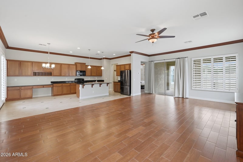 Listing details for 12715 153rd Ln, Surprise, AZ 85379 : Welcome to a home that lives as beautifully as it looks. Situated in tree-lined Marley Park, this thoughtfully upgraded residence offers a rare combination of character & functionality. The unique & intelligently modified layout immediately impresses. A flexible bonus space adapts to your needs as a 4th bedroom, private office, or formal dining area. 2 BRs access walk-in closets & master bath- ideal for nursery, guests, or multi-generational living. This isn't a quick flip. It's been carefully improved by owners who prioritized quality & practicality: like centrally located floor outlets in the great room. Step outside to a truly exceptional backyard w/outdoor kitchen, fire pit, custom tile, & patio w/ pony wall & gate- ideal for pets & a future pool. Plus iconic Chicago-style food nearby!