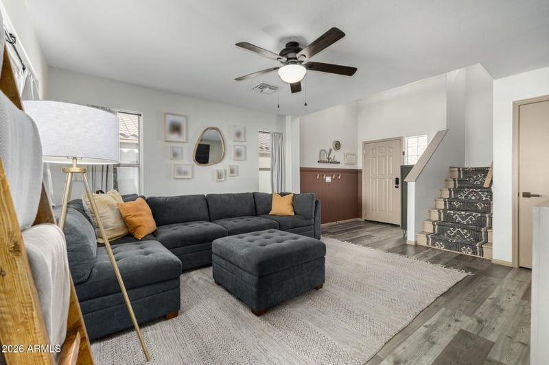 Listing details for 12720 Cantenia Rd, Avondale, AZ 85392 : Experience the charm of this fabulous two-story home with a sparkling pool and warm, inviting spaces throughout. The welcoming great room features custom woodworking that adds character where you can see the pride of ownership. The updated kitchen (2025) offers ample cabinetry, built-in appliances, updated fixtures, and a dining area with French doors leading to the patio for easy indoor-outdoor living. Upstairs, a versatile loft provides space for a TV area, office, or playroom. The spacious primary suite includes a private bath with glass-enclosed shower and a walk-in closet. Enjoy peace of mind with a new roof (2025). The backyard is perfect for entertaining with a covered patio and pool with rock waterfall. Don't miss this one!