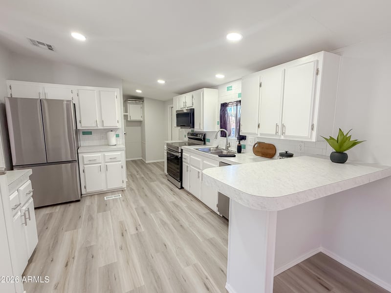 Listing details for 12721 Greenway Rd #39, El Mirage, AZ 85335 : Welcome to Rosewood Estates — a beautifully updated 3-bedroom, 2-bath home in an inviting all-age community. This home has been meticulously remodeled to ensure a quick and easy move-in process. Step inside to find fresh paint, new floors, and gleaming appliances that make everything feel brand new. Each bedroom includes its own walk-in closet for effortless organization, while the open-concept design creates the perfect flow for everyday living or entertaining. Enjoy morning coffee or sunset dinners under two covered patios and let your furry friend roam freely in the spacious backyard. Community perks include pools, a jacuzzi, and neighborhood gatherings that make every day brighter. CREATIVE FINANCING AVAILABLE— rent-to-own or seller carry options!