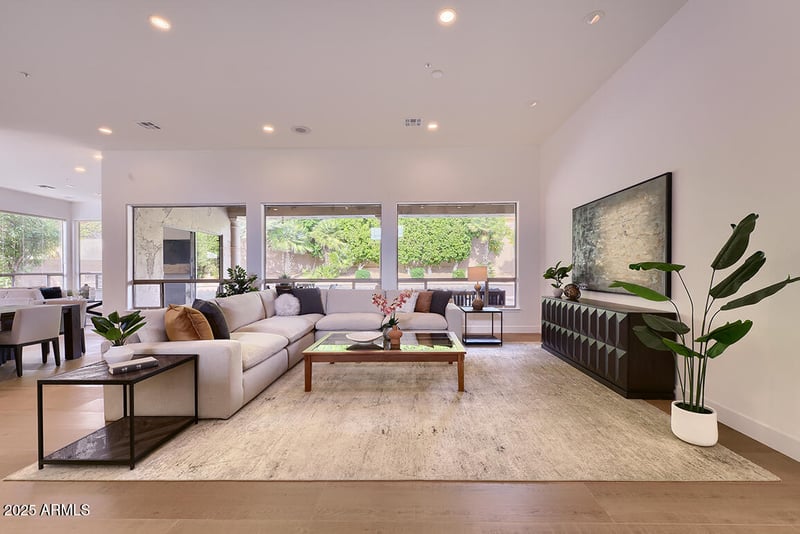 Listing details for 12728 Kalil Dr, Scottsdale, AZ 85259 : Welcome to modern luxury in Scottsdale's prestigious Sonoran Heights community in the desirable Via LInda Corridor! This meticulously updated home showcases contemporary elegance with designer finishes throughout. Step into an open-concept great room bathed in natural light, featuring soaring ceilings, wide-plank wood-look tile flooring, and a stunning floor-to-ceiling wood accent wall with modern fireplace creating an inviting focal point. The chef's kitchen is a showstopper with leathered marble countertops with beautiful movement and veining, top-of-the-line stainless appliances including a built-in Sub-Zero refrigerator, and a center island with cooktop. Glass-front cabinets and abundant storage make this kitchen as functional as it is beautiful, while the breakfast nook offers serene backyard views. The luxurious primary suite is a true retreat with direct pool access, providing seamless indoor-outdoor living. The spa-inspired ensuite bath features dual vanities with leathered marble counters, a soaking tub positioned beneath windows for natural light, and a frameless glass shower. Thoughtfully designed floor plan offers privacy and comfort with generously sized secondary bedrooms featuring the same beautiful wood-look flooring and ample natural light. The secondary bathroom boasts a dual-sink vanity with leathered marble counters, modern black-framed mirrors, and contemporary fixtures. Step outside to your private resort-style backyard oasis complete with a sparkling pool and spa, a large covered patio and TWO built in gas fire pits flanking the pool. The travertine pavers throughout create multiple dining, entertaining and relaxing spaces for cozy evenings under the Arizona stars. The professionally landscaped yards feature mature palms, native desert landscaping, and lush greenery creating natural privacy. Additional features include a three-car garage with epoxy flooring and extensive built-in storage cabinets. This gated community sits at the base of the McDowell Mountains and is directly across from Desert Mountain High School and Mountainside Middle School, with Anasazi Elementary nearby - all within walking distance. Don't miss this turn-key opportunity to own a completely renovated home with resort-style outdoor living with spectacular hiking right out of your front door in one of Scottsdale's most desirable communities!