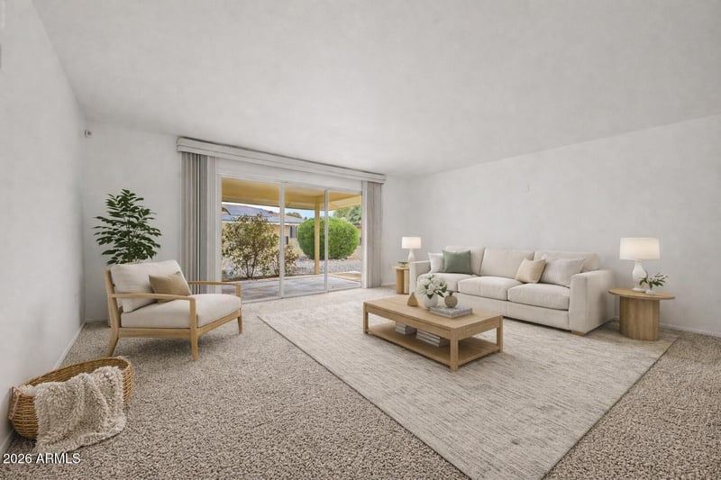 Listing details for 12836 Desert Glen Dr, Sun City West, AZ 85375 : Well-maintained home including an updated roof,new A/C being installed.N/S exposure.Enjoy a private walled/gated front courtyard for added charm and privacy,covered entry.Fresh interior paint and carpet throughout,Plantation shutters.This D7624 floorplan has been lightly modified for a more open feel.Kitchen features a raised ceiling with skylight for great natural light, plus a bay window with large bench seat and built-in storage.Spacious indoor laundry room includes a sink, counter space, storage cabinets, and skylight.Guest bedroom offers a walk-in closet and sliding doors to front courtyard.Bathrooms have updated granite-top vanities,mirrors& light fixtures. Extended covered back patio.Lower tax area.HOA covers all water to home,trash,pest control,exterior maintenance and more