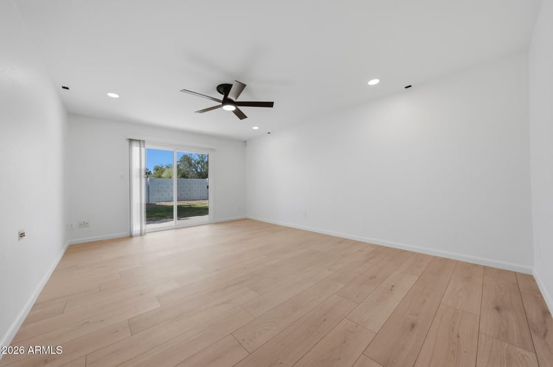 Listing details for 12838 33rd St, Phoenix, AZ 85032 : ''Completely redesigned and reimagined home in the highly desirable Melrose Park area! This stunning 3 bedroom, 2 bath residence plus a versatile den/office has been thoughtfully updated from top to bottom in 2026. Step inside to a sleek, modern finish featuring wall-to-wall wood-look, 22 mil luxury vinyl plank flooring, brand-new cabinetry, a fully remodeled kitchen with new appliances, updated lighting and fixtures, and abundant cabinet space. The eat-in kitchen flows seamlessly into a spacious family room filled with natural light, creating the perfect setting for both everyday living and entertaining. Additional upgrades include new dual pane windows throughout, updated plumbing, interior and exterior painting, fresh exterior landscaping, new baseboards, and an epoxy-coated garage floo for a clean, finished look. Every detail has been carefully considered to offer comfort, style, and peace of mind. Ideally situated with convenient access to shopping and dining at Paradise Valley Mall, outdoor recreation at Paradise Valley Park, and quick connectivity via Arizona State Route 51, this home offers both privacy and prime location. Modern design, quality upgrades, and an unbeatable North Phoenix location, this is one you don't want to miss.