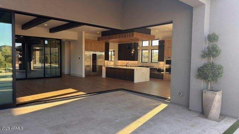 Listing details for 12838 Ironwood Dr, Scottsdale, AZ 85262 : BRAND NEW 3956 SF home with pool on 71,599 SF homesite in gated North Scottsdale community; 3 ensuites with walkin closets, powder bath, study, interior courtyard and extended backyard patio; 4 car garage open plan with beamed entry, family and dining; 90 degree sliding doors to courtyard and backyard; 12' slider at dining, gourmet kitchen w/48'' Wolf rangetop with griddle, 30'' double oven, 24'' microwave drawer; 30'' built-in Subzero refrigerator w/24'' Subzero wine column and 24'' Freezer column; Zephyr wine/bev cooler; 48'' hood; waterfall island with views of fireplace in family room; solid core interior doors w/iron entry door; upgraded tile, flooring and details throughout; 2x6 CONSTRUCTION & NEW HOME WARRANTY.