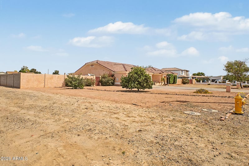 Listing details for 12844 Peoria Ave, El Mirage, AZ 85335 : Fantastic opportunity to own this corner lot property on a 1.5-acre corner lot! You're greeted by a 3-car garage, an RV gate, & an inviting front patio. Fall in love w/ the captivating living room featuring vaulted ceilings, a fresh palette, classic plantation shutters, & durable tile flooring. Also has a seperate great room, perfect for relaxing evenings. The stunning chef's kitchen comes w/ granite counters w/ a matching backsplash, abundant wood cabinetry, sleek stainless steel appliances, & an island w/ a breakfast bar. This home has 2 Master Bedroom suites with private bathrooms w/ dual sinks. Outdoors, the expansive space boasts a full-length covered patio, a basketball half-court, a large shed for storage, & breathtaking mountain views. Make this gem yours today