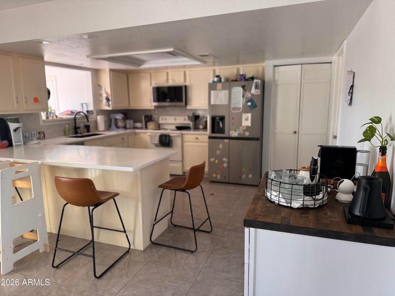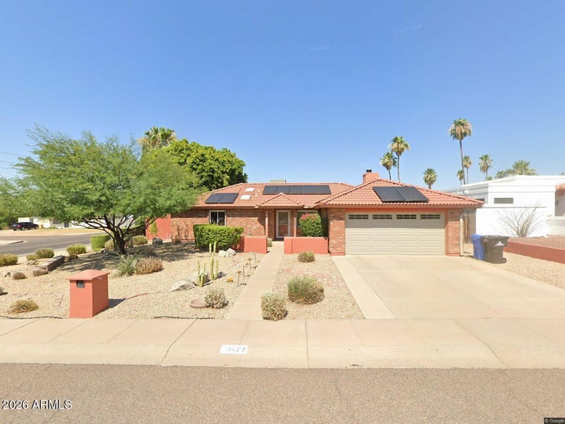 Listing details for 13002 23rd Pl, Phoenix, AZ 85022 : Why settle for basic when you can have EXTRAORDINARY? This stunning 3-bed, 2-bath brick home sits on a premium 1/4-acre elevated corner lot with sweeping Mountain Views. The interior was transformed in 2023 with sleek new wood-look tile and a show-stopping Master Bathroom remodel. The open concept kitchen features upgraded appliances(2022) and flows perfectly into a large dining area. Solar installed (2022) with $108 avg monthly savings. The backyard is an absolute ENTERTAINER'S PARADISE: Dive into the fenced pool(new pump 2020),relax under the custom Ramada, or fire up the built-in BBQ. Peace of mind is standard here with major 2025 mechanical updates: New Water Heater, Water Softener, Pressure Regulator, and Irrigation System. Washer/Dryer(2022) included. Hiking trails steps away.