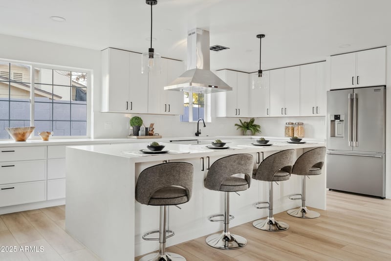 Listing details for 1302 Golden Ln, Phoenix, AZ 85021 : Lifestyle living at its finest!! Whether hosting summer parties or relaxing under the stars, this space is made for unforgettable moments!! Nestled in the highly desirable Royal Palms community with an AMAZING COMMUNITY PARK, enjoy proximity to top-rated schools, shopping, dining, parks, and easy freeway access to places like Old Town, Kierland, Sky Harbor and the Scottsdale Airpark all located within about 20 minutes!! Thoughtfully updated, ideally located, and ready for its next chapter this is modern living at its most effortless!! Experience the perfect blend of modern design and timeless comfort in this beautifully reimagined single-level residence. From the moment you arrive, you'll be greeted by enhanced curb appeal featuring a pavered front patio, extended driveway, and... mature shade trees that frame the home with classic Arizona charm. Step inside to discover an open-concept floor plan infused with natural light and elevated finishes throughout. Designer touches include French windows, stylish light fixtures, wood-look tile flooring, and fresh neutral paint that create a bright, contemporary feel. The chef-inspired kitchen showcases crisp white cabinetry, quartz countertops, stainless steel appliances, and a large island with a breakfast barperfect for gatherings and casual dining. A separate family room provides additional living space, while a private den with French doors offers flexibility for a home office, gym, or creative retreat. A new electrical panel adds modern convenience and reliability. The backyard is an entertainer's paradise an inviting outdoor retreat complete with multiple paver patios, lush green lawn, sparkling pool, built-in BBQ with wine cooler, and cozy fire pit.