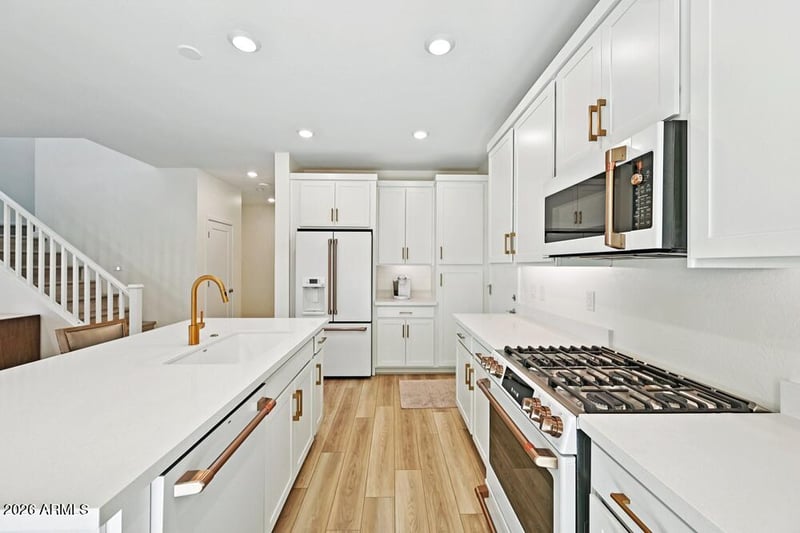 Listing details for 1303 Bluejay Dr, Chandler, AZ 85286 : Welcome to this beautifully maintained, move-in ready home in a desirable gated Chandler community—just minutes from Intel, shopping, dining, and easy access to the I-10, Loop 101, and Loop 202. Built only four years ago and very lightly lived in, this 4-bedroom, 3-bath residence offers modern finishes, exceptional care, and the peace of mind that comes with newer construction. Residents enjoy a resort-style community pool and hot tub, while the home's prime location and pristine condition make it an ideal choice for today's buyer. Inside, the home features premium plank flooring throughout the main living areas, upgraded carpet in the bedrooms, and an open, functional layout designed for everyday living. The kitchen is thoughtfully upgraded with granite countertops, upgraded cabinetry, upgraded appliances, and a large island with breakfast bar - perfect for casual meals or entertaining. Additional highlights include a spacious loft, tankless hot water heater, water softener, alarm system, and convenient upstairs laundry. Outside, enjoy a low-maintenance yard and a covered back patio, with close proximity to the community pool for easy relaxation. Meticulously maintained and truly move-in ready, this home combines comfort, convenience, and location in one exceptional Chandler opportunity!!