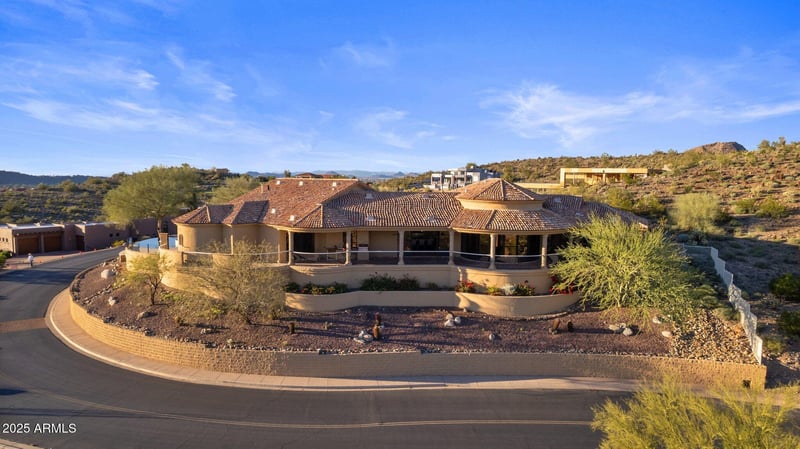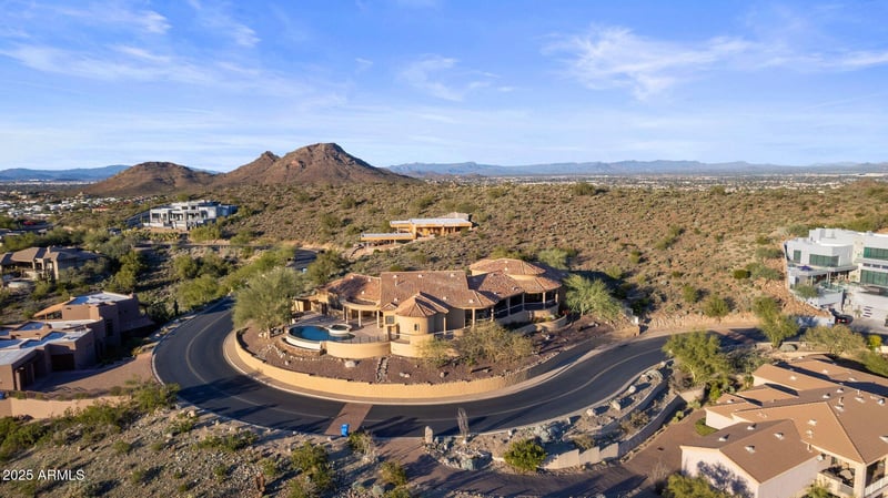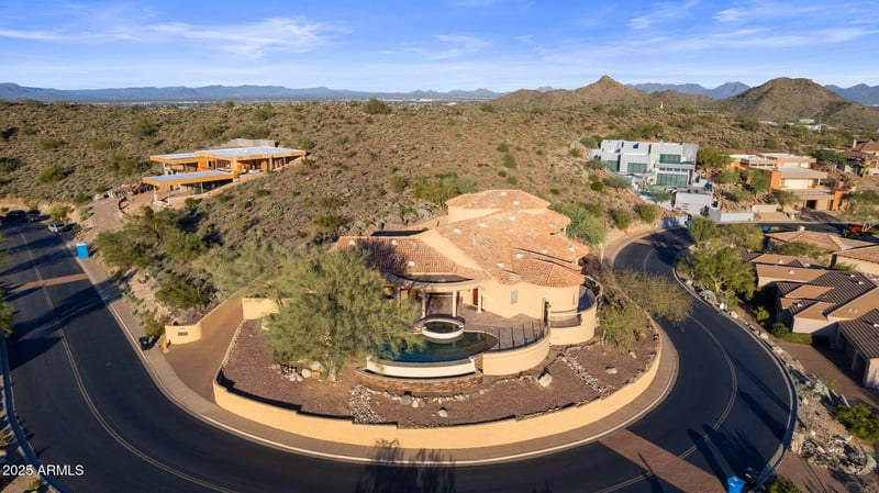 Listing details for 13041 17th Pl, Phoenix, AZ 85022 : Architecturally significant single-level residence designed by Arvid Johnson Associates, Ltd., positioned on the premier lot within a gated enclave of approximately 40 custom homes. Thoughtfully oriented through extensive sun studies to capture panoramic city, golf course & mountain views while minimizing direct solar exposure on primary glass walls. A sweeping curved wall of oversized glazing delivers a continuous panoramic effect, complemented by a dramatic domed entry with custom lighting. High ceilings enhance volume & passive comfort throughout. Double-height garages offer the ability to add multiple car lifts, expanding parking capacity to as many as 8 vehicles. Built on a monolithic poured foundation with reinforced retaining walls for exceptional stability & quiet comfort, plus four independent HVAC zones, concealed blackout/security shades & whole-house water filtration for performance-driven living.