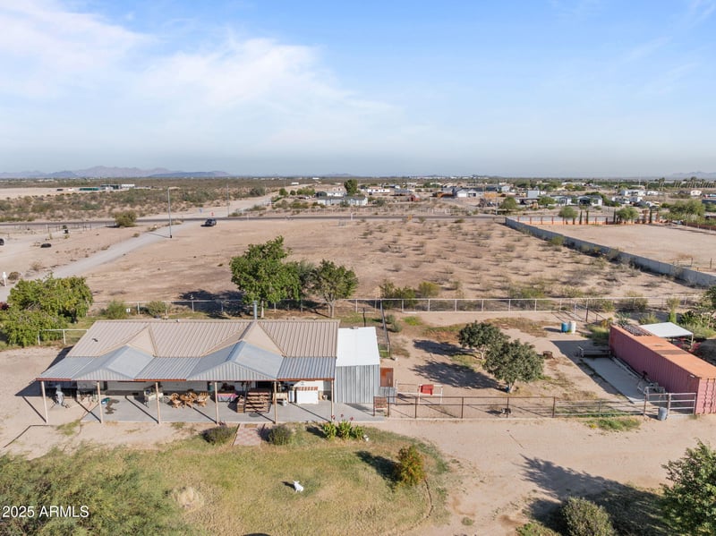 Listing details for 1307 343rd Ave, Tonopah, AZ 85354 : Horse property!!! Welcome to your own slice of Arizona ranch living! Riding Arena!!! home sits on 3 spacious acres and is full of Western charm, warm natural tones, and thoughtful features throughout. Inside you'll find a cozy, welcoming layout with a classic ranch-style aesthetic. The primary suite includes a large soaking tub, walk-in shower, and plenty of room to unwind after long days on the property. Step outside and enjoy everything a true horse property should offer. The acreage is fully fenced with pipe and no-climb wire and includes a well-designed arena, covered corrals, and multiple Connex storage containers. A covered patio offers shade and views, while mature shade trees and a patch of green lawn create a peaceful setting. Additional amenities include an RV carport extra storage options, Fireplace, Dog Run, a durable metal roof, 2 septic tanks, and a private well. As a bonus, this property comes with a beautiful 5th wheel RV, complete with its own washer and dryer and full RV hookups perfect for guests, extended stays, or rental income potential. The RV also has it's own fenced area. This Tonopah gem has everything you need for comfortable country living, equestrian convenience, and plenty of room to grow. Don't miss the chance to make it yours!
