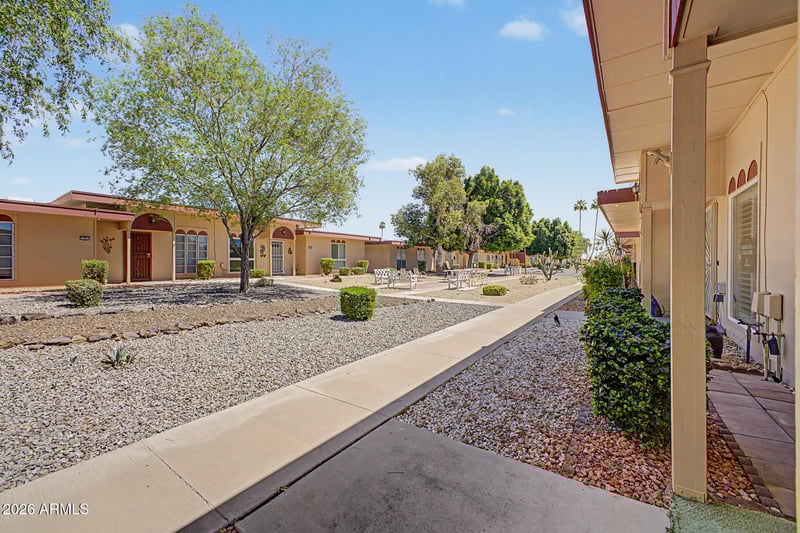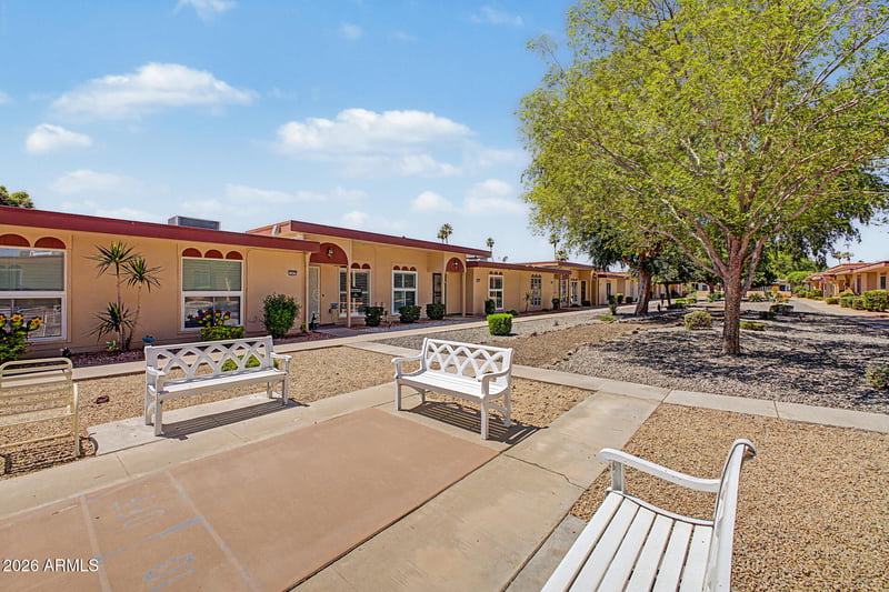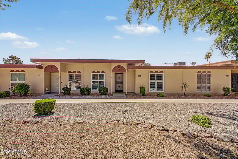 Listing details for 13075 100th Dr, Sun City, AZ 85351 : Charming 2 bedroom 1 bath home located in the desirable active adult community of Sun City. This well maintained home features newer energy efficient windows that provide an abundant natural light and improved comfort throughout the year. The updated walk-in shower adds a modern touch to the bathroom, while the bright Arizona room offers additional flexible living space-perfect for a hobby room, office, or a relaxing retreat. Step outside to enjoy the private fenced patio, ideal for morning coffee, outdoor dining, or entertaining guests. Low maintenance fees makes this home perfect for either year round living or snowbirds. Residents of Sun City enjoy access to multiple recreation centers, golf courses, pools, fitness facilities, clubs and activities. This home is conveniently located.