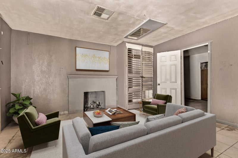 Listing details for 1312 Sunland Ave, Phoenix, AZ 85041 : Reduced for IMMEDIATE SALE. Large single-family dwelling features 6 bedrooms, 3 baths, + 1 room detached studio w/kitchen & bath. Roll back style front metal gate entry, generous amount of slab parking, rear alley access, and more! HUGE potential after new buyer updates and remodels or builds new. No utilities - take flashlight: property is boarded. Subject property City Zoning is R1-6 which allows (1) residential single-family dwelling per every 6,000 sq.ft. of lot. Subjects lot size is approximately 8,253 sq.ft. and detached studio is allowed. Buyer acknowledges said zoning. Submit all CASH or HARD money offers now for Seller review and approval. To help visualize this home's floor plan and to highlight its potential, virtual furnishings have been added to photos in this listing