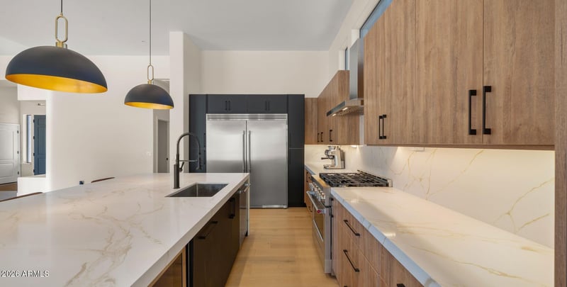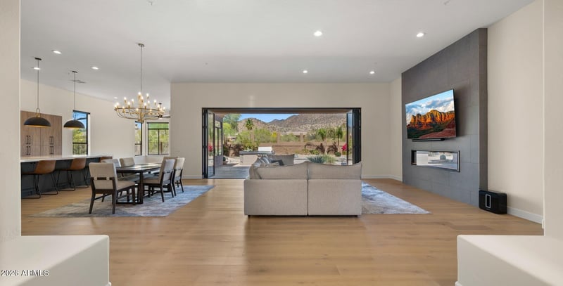 Listing details for 13144 Lupine Ave, Scottsdale, AZ 85259 : Welcome home to this luxuriously remodeled home with breathtaking McDowell Mountain views! This home features a sought-after split floor plan, soaring 12 ft ceilings, wood flooring throughout, modern finishes, designer lighting, custom cabinetry, and quartz countertops. The reimagined kitchen opens to 2 expansive living areas and offers KitchenAid stainless steel appliances, a commercial-style gas range, 66-inch built-in refrigerator, microwave drawer, wine fridge, and an expansive waterfall island. A dramatic 20 ft folding glass door opens to the covered patio for seamless indoor-outdoor living. The private backyard offers resort style living with breathtaking views as you relax by the pool or in the spa. Spacious primary suite with dual vanities, LED mirrors, and custom shower. freestanding tub. Expansive laundry room with custom cabinets leads to the oversized 3-car garage with epoxy floor. Prime location near Mayo Clinic, Rio Montana Park, hiking trails, BASIS, WestWorld, Scottsdale Quarter, Kierland, and Loop 101.