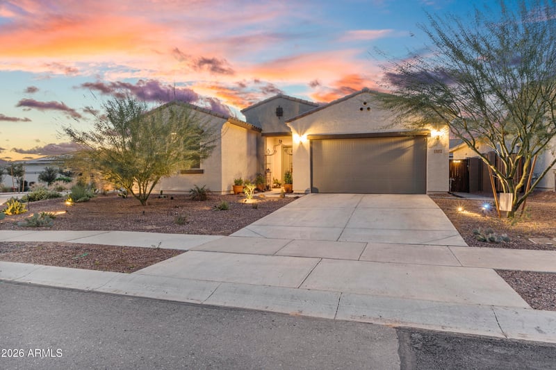 Listing details for 13172 174th Dr, Surprise, AZ 85388 : This is the one! Just like new, built in 2023. This beautiful Aries floorplan, Mattamy Home with over $55K in upgrades on a premium corner lot. This wonderful single-story plan offers 1,973sq ft with 3 bedrooms, 2 baths, a flex room/den, covered back patio, and a roomy 3-car tandem garage—perfect for toys, work, and play. Features include a Samsung Bespoke refrigerator, washer & dryer, plus a gorgeous backyard with desert landscaping, pavers and a gazebo. All in a great Surprise location near The Prasada shopping, dining, and entertainment. Assumable VA loan offered to an eligible VA Buyer