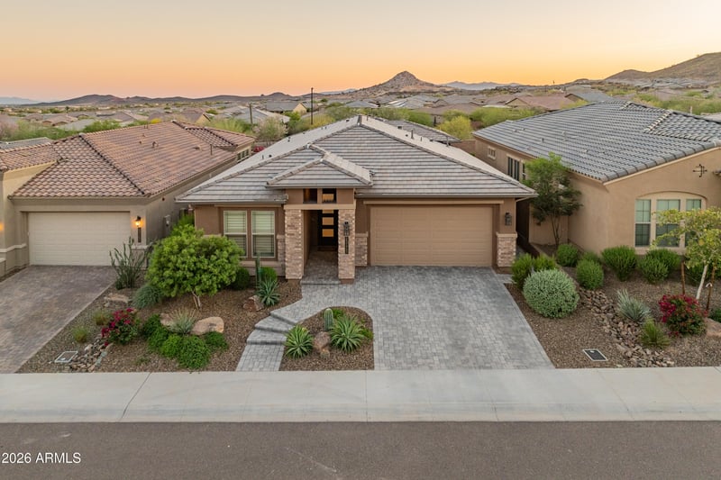 Listing details for 13173 Horsetail Trl, Peoria, AZ 85383 : Welcome to Northpointe at Vistancia in scenic Peoria, AZ. This beautifully upgraded David Weekley home, built in 2022, offers modern design and exceptional comfort. The open main living area showcases soaring 12-foot ceilings and elegant porcelain tile flooring throughout. The chef's kitchen is equipped with premium GE Monogram appliances, while the backyard is perfect for entertaining with a built-in patio grill. Additional highlights include a luxurious super shower, automated window coverings, and a 3-car garage with coated flooring. Enjoy stunning mountain views and the peace of mind that comes with a meticulously maintained home--ready for immediate move-in.