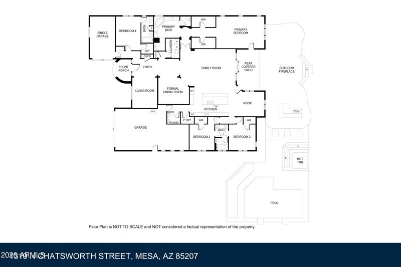 Listing details for 1319 Chatsworth St, Mesa, AZ 85207 : You will find quality and beauty throughout this impressive home. Walk through a decorative front security door to find a light open floor plan. Home boasts an office/den and formal dining room, then opens into the great room, kitchen, and breakfast room. Home features 12 foot ceilings and surround sound in the great room. The kitchen has a beautiful oversized island with seating, stainless steel appliances, double ovens, granite countertops, two toned cabinets, under cabinet lighting, a gourmet gas stove, and a walk in pantry. The primary bedroom is split from the other bedrooms with a grand entrance, double closets, a large bathroom with a separate tub and shower, and double vanities. The second bedroom is also split from the other rooms and has an attached bathroom and walk in closet. Bedrooms three and four also feature walk in closets with a bathroom attached in between the rooms. There is a half bathroom off the kitchen. The large lot allows for plenty of outside living. The covered patio and outside fireplace is a great place to relax. Enjoy the built-in BBQ with gas directly plumbed from the house, impressive spa, and pool with a waterfall feature and in-floor cleaning system.. The HOA does allow RV parking behind the RV gate. Lot has room to add an RV garage in the future. Other homes in the neighborhood have successfully received HOA approval for the addition. Reach out to HOA for more information. Back patio is wired for surround sound. There are two garages, one 3 car tandem garage and another 1 car garage with a 220v electrical outlet. The home also features 2 A/C units with 3 control panels and a whole home recirculation system. Don't miss out on this spectacular home.