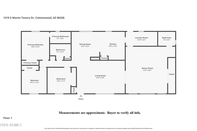 Listing details for 1319 Monte Tesoro Dr, Cottonwood, AZ 86326 : Charming 3-bedroom, 3-bath home built in 1985 with thoughtful updates throughout. New wood laminate flooring in the living room and all bedrooms creates a clean, cohesive feel. Spacious bonus room offers flexibility as a potential second primary suite with its own ensuite bath--ideal for guests or multi-generational living.