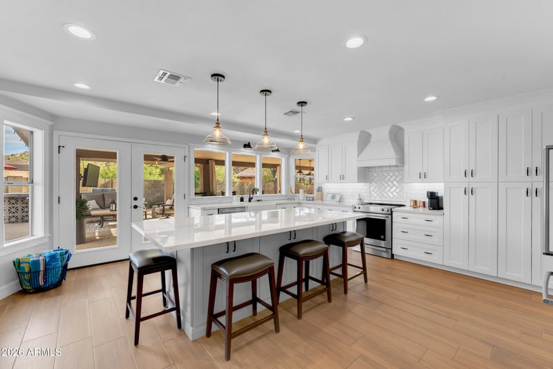 Listing details for 133 Pershing Ave, Phoenix, AZ 85029 : Experience elevated desert living in this fully remodeled home, where nearly 3000 sq/ft of style and comfort seamlessly come together. Boasting breathtaking panoramic mountain views, this property offers over 13,000 sq/ft of luxury and natural beauty, nestled in a cul-de-sac near the renowned hiking trails of the Phoenix Mountain Preserve. Step inside to a vaulted, light-filled layout centered around a stunning fireplace--perfect for both relaxing evenings and entertaining. The luxurious primary suite is a true retreat, featuring a spa-inspired bathroom, walk-in shower, and a spacious custom closet designed for both elegance and functionality. The beautifully updated kitchen features a large island ideal for gathering, a second oven for effortless entertaining, and a timeless subway tile subway tile backsplash that adds a modern touch. A versatile 4th bedroom offers the perfect space for a home office or guest retreat, complete with a built-in Murphy bed for maximum flexibility. Outdoors, your private oasis awaits. Enjoy sunny Arizona days in the newly refinished diving pool with baja step, unwind by the firepit, or relax under one of two covered patios enhanced by a professional misting system for year-round comfort. The sport court adds an extra touch of recreation right at home. Complete with a 3-car garage and thoughtfully upgraded throughout, this exceptional property offers the perfect balance of sophistication, convenience, and resort-style living.