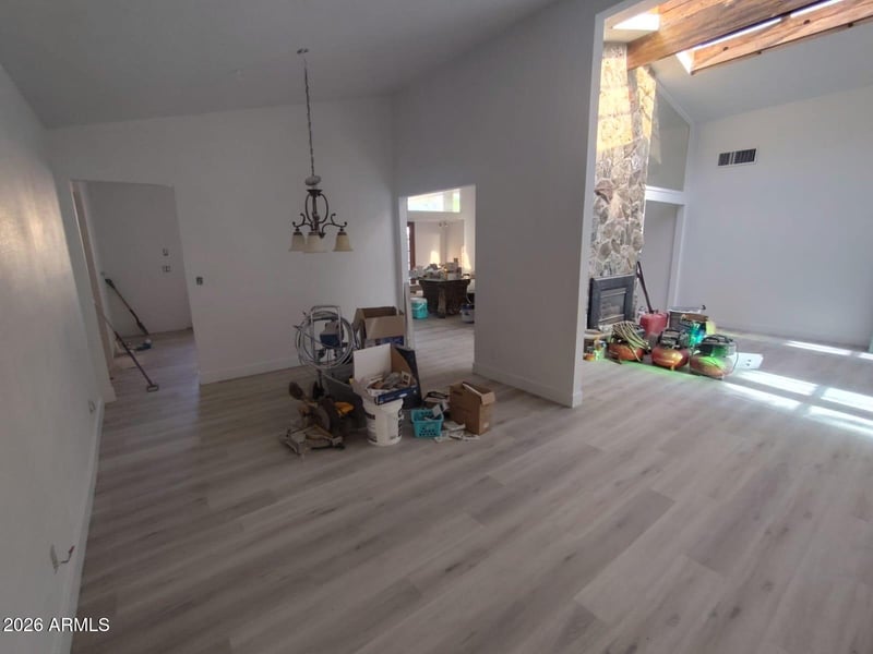 Listing details for 1332 Monte Tesoro Dr, Cottonwood, AZ 86326 : Spacious 3-bedroom, 2-bath home ready for your personal touch and finishing vision! This property offers a fantastic opportunity to customize and add value, featuring a desirable dual-sided gas fireplace, new vinyl flooring, multiple flexible-use rooms, and fresh interior paint already completed. With a functional layout and generous living spaces, this home is primed for transformation. Remaining improvements include installation of carpet, exterior paint, a full kitchen build-out, partial bathroom finishes, and AC, allowing you to design and complete the home exactly to your taste. Whether you're an investor or a buyer looking to create your dream home, this property presents incredible potential in a great layout. Don't miss the chance to make it your own!