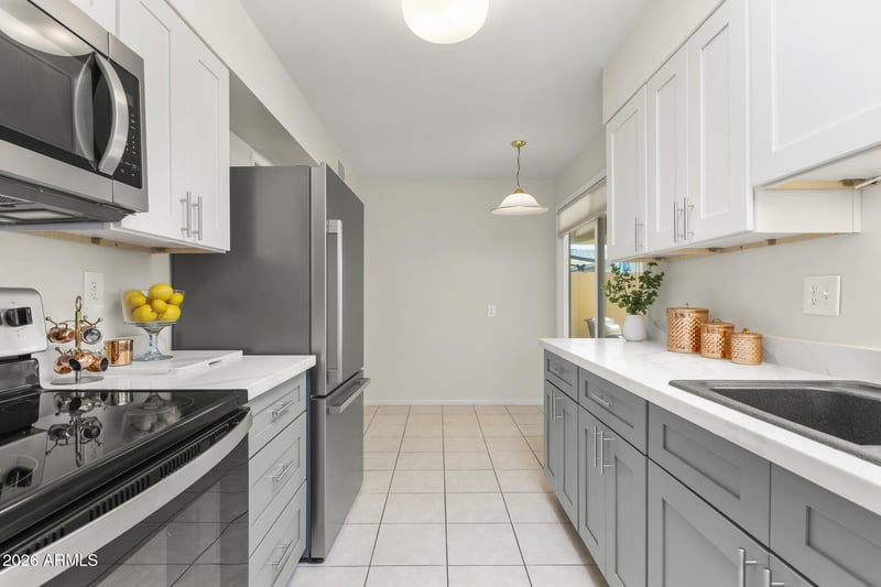 Listing details for 13321 Copperstone Dr, Sun City West, AZ 85375 : Beautifully updated home in the heart of Sun City West! This inviting property features newer DaBella windows, modern cabinetry, beautiful quartz countertops, and a blend of tile and luxury vinyl plank flooring throughout. Enjoy a spacious layout with a large living room and an additional Arizona room--perfect for relaxing or entertaining. Step outside to a beautifully designed outdoor space, including a generous patio with sail shade covering. The charming front courtyard is peaceful; enhanced w/lush and mature plants and palm landscaping. The updated primary bathroom adds a fresh, contemporary touch, while the garage offers built-in cabinetry for ample storage. HOA covers roof, exterior maintenance, pest control, and more--offering added value and peace of mind. Ideally located near medical services, shopping, dining and everyday services with easy access to main arterials, this home combines peaceful surroundings, comfort, style, and convenience in one exceptional package.