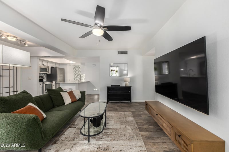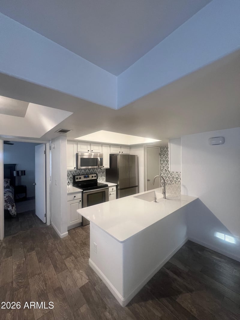 Listing details for 1333 Morten Ave #117, Phoenix, AZ 85020 : Move in ready 2 bedroom/2 bath condo in a prime Phoenix location near the SR-51 freeway and Piestewa Peak/Phoenix Mountain Preserve. This fully updated home features a spacious kitchen with stainless steel appliances, quartz countertops, and generous counter space ideal for everyday living and entertaining. Wood look tile flooring flows throughout the unit. Both bathrooms have been updated with fresh modern finishes. Enjoy morning coffee or outdoor dining on your private patio. Community amenities include a pool, hot tub, and cabana. 1 dedicated covered parking space. Convenient access to hiking, dining, shopping, freeways, downtown Phoenix and Sky Harbor Airport. HVAC 2023, Water Heater 2021, Fridge 2023, Washer/Dryer 2018, Roof 2025