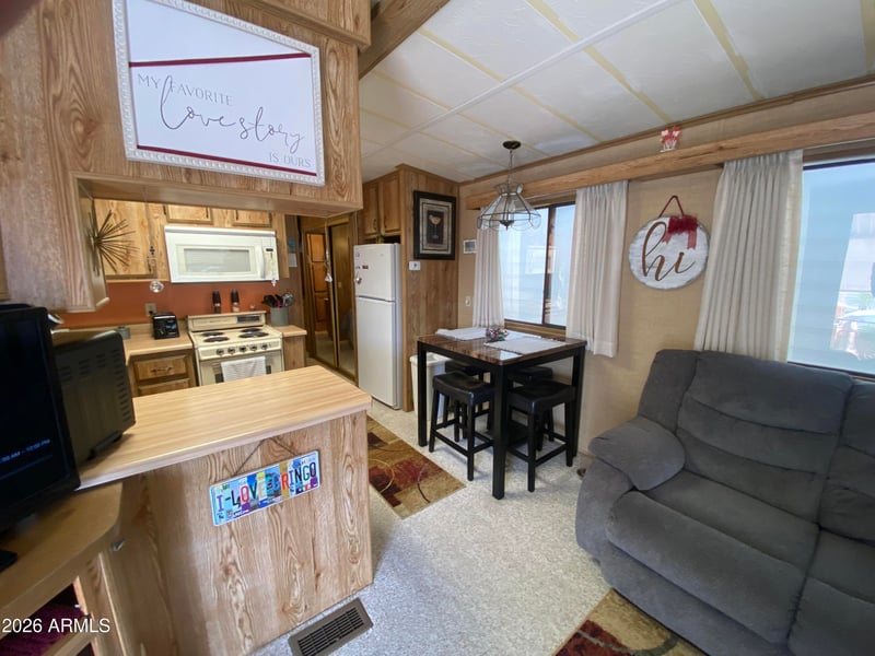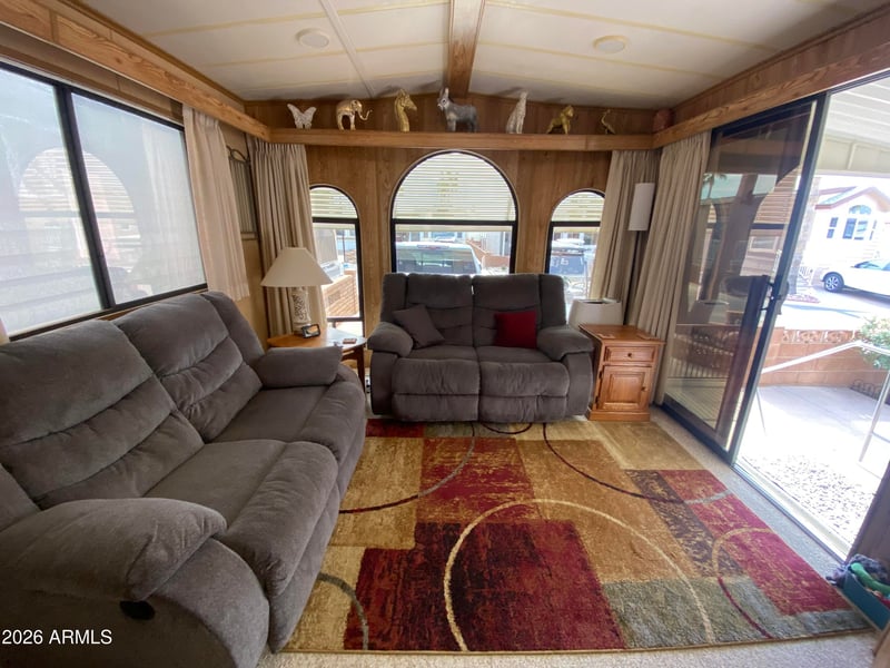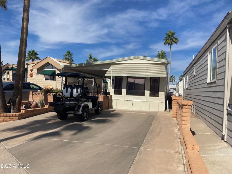 Listing details for 1340 Inuit Ave, Apache Junction, AZ 85119 : Own the land in this 55+ golf course resort. Incredibly clean and well taken care of unit on an extra deep lot (75ft) Plenty of parking for your vehicle and golf cart without taking away from outside entertaining space. Very roomy shed with brand new W/D purchased 1/2026. Exterior paint and roof sealant completed 1/2026. A/C & heat system professionally inspected 1/2026 and was given a great report and life expectancy. New hot water heater 2025. 2 reclining loveseats, 2 TV's, kitchen table, queen bed, dishes, utensils and cookware all stay!! 3 ft block wall around entire unit, great for dogs, and a front double gate entrance.