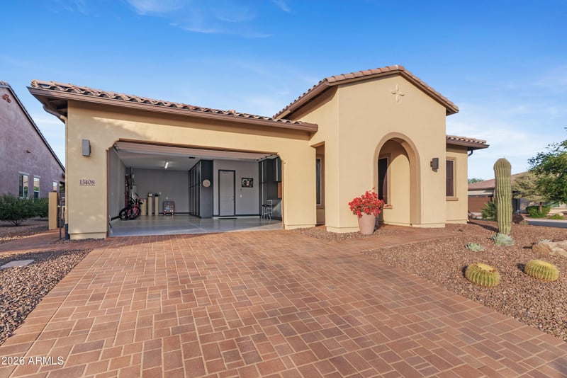 Listing details for 13408 Evergreen Ter, Peoria, AZ 85383 : Exquisitely presented Concentric model Shea residence positioned on a premium Eastern corner lot, showcasing a thoughtfully designed floor plan that blends sophistication with functionality. The heart of the home features a HUGE kitchen island, perfect for entertaining & everyday living. This home has been meticulously maintained with designer interior paint and dual-coat exterior paint, 2 elegant accent walls, complemented by new plush bedroom carpeting and a $7,500 Culligan whole-home water system. A rare 3.5-car tandem garage has been enhanced with epoxy flooring, custom cabinets, & a built in workbench—ideal for storage, hobbies, or extra workspace. Outdoor spaces are equally refined, featuring low-maintenance landscaping, a paver driveway, & travertine covered patio. Additional enhancements include custom window treatments, sunscreens, front security door, and a rear sliding door with retractable screen, creating seamless indoor-outdoor living. A true testament of pride of ownership!