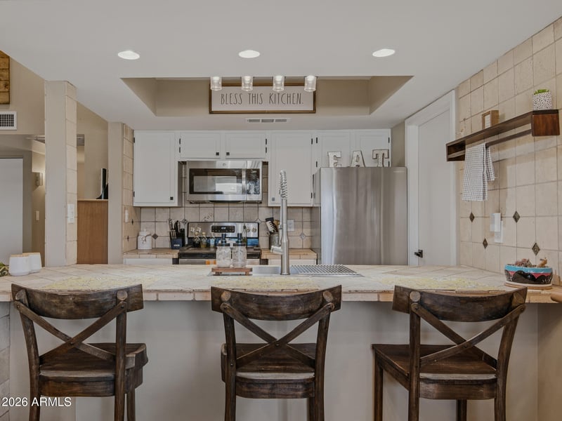 Listing details for 1342 Emerald Ave #278, Mesa, AZ 85202 : Stylish 2 bedroom/2 bath end unit condo offering comfort and convenience, affordable one-level living in an easy-care condo complex. Enjoy a bright, open layout with new stainless steel appliances, a brand new AC/Heat Pump, and great natural light throughout. The private corner end unit location adds extra windows and privacy, while the outdoor entertaining space is perfect for relaxing or hosting friends, which also includes a community pool. Move-in ready with thoughtful updates already done. Conveniently located close to shopping, restaurants, and access to the 60/101 freeways. Easy living in a low maintenance setting!