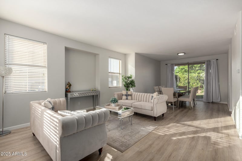 Listing details for 13533 Cypress St, Goodyear, AZ 85395 : Seize the chance to own this delightful 4-bedroom residence in Palm Valley! You're welcomed by a 2-car garage, a paver driveway, and a well-maintained front landscape. Fall in love with the serene living/dining room with high ceilings, a soothing palette, blinds, and wood-look flooring. Spend relaxing moments with loved ones in the great room, complete with sliding doors that lead to the backyard for seamless indoor-outdoor living. The kitchen comes with granite counters, abundant wood cabinetry with crown moulding, recessed lighting, built-in appliances, a pantry, and an island with a breakfast bar. The main bedroom showcases an ensuite with dual sinks and a walk-in closet. Enjoy enchanting sunsets in the backyard, which includes a covered patio and artificial turf. Make this gem yours! GATED community!!!! community amenities include AMAZING huge pool and Gazebo's & BBQ. entertaining at it's best!!! All this and more included in your HOA. Furniture can be sold outside of escrow & tons of overflow parking. Location is ideal! Close to Excelling schools, parks, hiking, biking paths GOLF, Loop 303 / I10 / Loop 101 / State Farm Stadium, Spring Training, outlets malls, entertainment district. WOW! Best price PPSQFT in 85395!