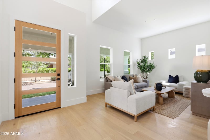 Listing details for 1360 Mulberry St, Gilbert, AZ 85296 : Fully remodeled down to the studs, this home delivers a rare blend of modern design and functional living in the heart of Agritopia AND located on a greenbelt! Thoughtfully reimagined with designer-selected finishes throughout, the home features expansive, light-filled living spaces, a spacious downstairs living room with kitchen area designed for entertaining, white oak flooring, and a chef's kitchen with a Wolf appliance package. Featuring ample space for multigenerational living, oversized 3 car garage with room for lifts, two laundry rooms and a first floor primary suite. Additional upgrades include three newer HVAC systems, a climate-controlled garage, and a freshly painted exterior. Clean lines and a timeless cohesive aesthetic create a warm yet elevated feel throughout.