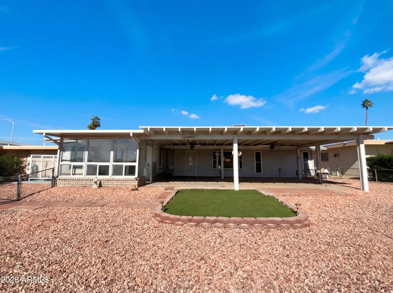 Listing details for 13613 Buccaneer Way, Sun, AZ 85351 : 55+ age restricted community. Welcome to 13613 N Buccaneer Way, a property that exudes charm and sophistication. The kitchen is a chef's dream, boasting an accent backsplash and stainless steel appliances for a sleek, modern look. The primary bedroom is a sanctuary of comfort, complete with a spacious walk-in closet for all your storage needs. Step outside to enjoy the covered patio, perfect for entertaining. The fenced-in backyard provides private space for outdoor activities. This property is a perfect blend of style and functionality, making it a must-see. Don't miss out on this gem!. Included 100-Day Home Warranty with buyer activation