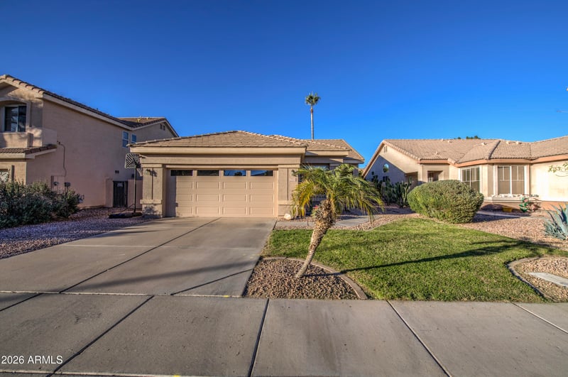 Listing details for 1364 Musket Way, Chandler, AZ 85286 : Surrounded by beautiful parks and just minutes from the 101 and the 202 Freeways. This inviting home offers comfort, functionality and thoughtful upgrades throughout. Inside vaulted ceilings and an open layout create a bright airy feel, while the kitchen features a center island, stainless steel appliances with Tiled counter tops. Perfect for everyday living and entertaining. Main suite is a true retreat complete with vaulted ceilings, a full bath with separate soaking tub and shower, a private toilet room and don't forget the large walk-in closet. Step outside to a backyard designed for enjoyment with a pebble tec play pool, includes a sun cover, newer variable-speed pump and salt chlorinator. seller built a storage shed for convenience. Updates include Roof 2025, wtr heater, dishwashe