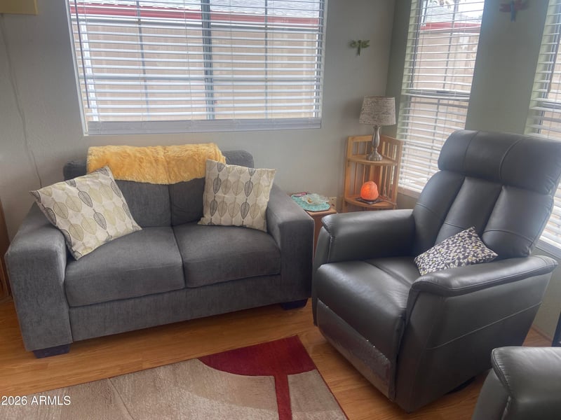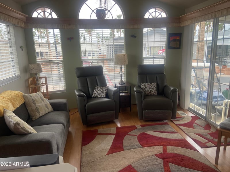 Listing details for 1367 Chesapeake Ave, Apache Junction, AZ 85119 : Everything is included in this well-kept winter retreat in this LAND OWNED golf course community! Light and bright interior with solid surface flooring, well equipped kitchen and newly purchased furniture included. There is ample parking! and the 2010 Chevy Impala and golf cart are included! Seriously! Sold by separate bill of sale. You will love the spacious private backyard with a great mix of sun and shade for entertaining! The casita style shed has a drop-down murphy bed, laundry and a half bath perfect for out-of-town guests! Spacious covered patio that doubles as car/golf cart storage when you are away! Come enjoy this 55+ golf course resort! FREE community tours are available anytime!