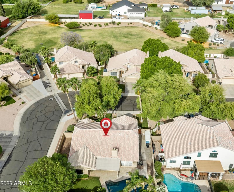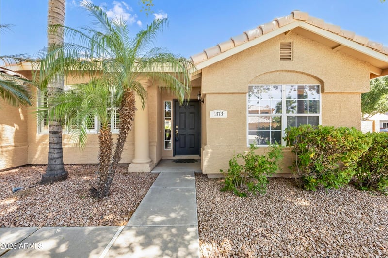 Listing details for 1373 Roadrunner Dr, Gilbert, AZ 85234 : This immaculate move-in ready home sits on a corner lot in the much desired town of Gilbert next to Superstition Springs Golf Course. The location offers a variety of shopping, restaurants, entertainment, and great schools. Fully remodeled, open concept design, and boasts stunning upgrades throughout. The kitchen is a chef's delight, featuring a large granite island and built in appliances, all bathed in natural light from the enormous double-pane tempered glass windows. The living area is centered around a cozy fireplace and includes tailored Graber fabric roller shades in the dining area. Step outside to your own resort-style oasis. The backyard is an entertainers dream, featuring a sparkling saltwater pool, waterfall feature, basketball hoop, lush landscape shade and fruit trees.