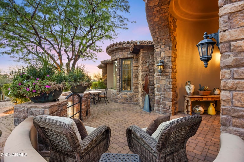 Listing details for 13766 Yucca St, Scottsdale, AZ 85259 : The views are what will draw you in, the gorgeous home is what will keep you there! Nestled on a cul-de-sac in the private Sierra Hills gated community, this recently remodeled Old European style home is warm and inviting and has the most stunning views of the Sonoran Desert, McDowell Mountains and city lights. Coming in at over 6,000 sq. ft., you have ample space for the 5 bedrooms, 5 bathrooms, guest powder room, bonus room, formal living room, dining room, family room, and eat-in kitchen. The outdoor cooking space is framed by two prep/seating peninsulas, with enough room to seat 10. Stunning views can be seen from every angle in this rear yard oasis, from lounging in the pool & spa to practicing your putting on the green, you will be enjoying breathtaking sunsets and starry desert nights for years to come.