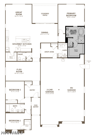 Listing details for 13784 Morning Vista Dr, Peoria, AZ 85383 : The dramatic Deacon plan welcomes guests with an inviting covered entry and continues to impress with a gourmet kitchen offering a walk-in pantry and a center island, an expansive great room and an elegant dining room with covered patio access. Three generous bedrooms are included, highlighted by a beautiful primary suite with a deluxe bathroom and an oversized walk-in closet. This home is built with a flex room. A powder room, mudroom and shared bath round out the plan.