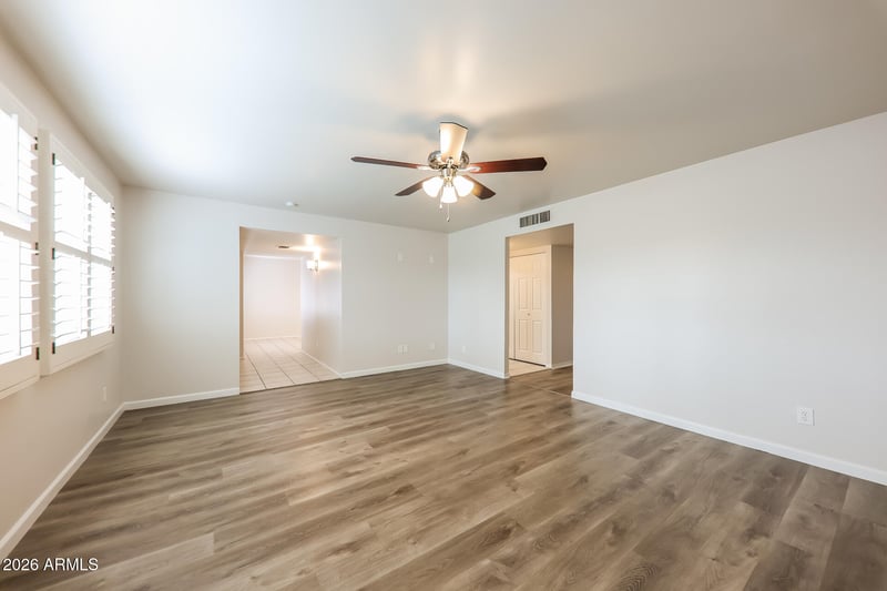Listing details for 13802 36th Ave, Phoenix, AZ 85053 : Beautiful 3-bedroom, 2-bath home in Phoenix featuring upgraded vinyl flooring and stylish quartz countertops in the kitchen! The open layout offers comfortable living with a bright and inviting feel, perfect for both relaxing and entertaining. The kitchen shines with modern finishes and overlooks the main living areas for easy everyday living. Step outside to enjoy the spacious backyard with plenty of room for outdoor dining, pets, play, or future customization. A great opportunity to own a well-maintained home in a convenient location close to shopping, dining, and freeway access.