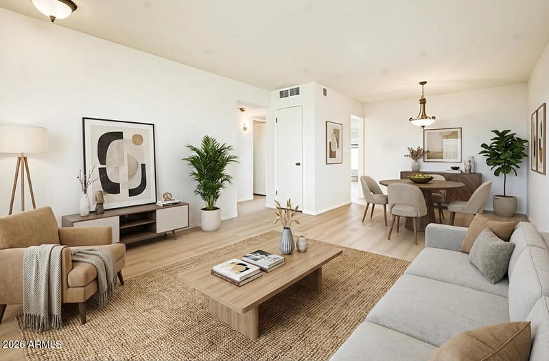 Listing details for 13820 Silverbell Dr, Sun, AZ 85351 : Cute, clean, and move-in ready! This charming 1 bed, 1 bath Sun City home offers 1,019 sq ft of bright, functional living with a desirable north/south exposure and covered carport. Inside, you'll find new laminate flooring, fresh paint, updated light fixtures, and a new toilet—giving the home a crisp, refreshed feel. The galley kitchen features an eat-in nook, while the spacious living room offers plenty of room for both lounging and dining. A bonus Arizona room just off the kitchen opens to the patio and makes the perfect den, office, or hobby space. Indoor laundry adds convenience. A well-designed floor plan, great natural light, and easy-care living make this one a standout—come see it for yourself!