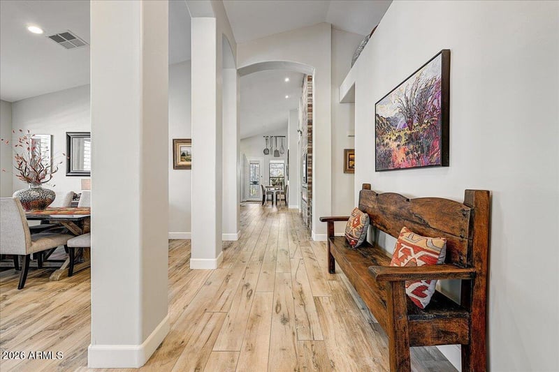 Listing details for 13907 Paradise Ln, Scottsdale, AZ 85259 : Stunning and fully remodeled, lightly lived in, used as a second home. This meticulously maintained residence is truly turn-key within the exclusive guard-gated community of Scottsdale Mountain. The home captures beautiful mountain views and features lush, refreshed landscaping that creates a tranquil, low-maintenance, lock-and-leave retreat. Inside, an open and spacious split floor plan is enhanced by soaring 14-foot vaulted ceilings, 6 ft plank tile flooring throughout entire home, designer finishes throughout. The kitchen is ideal for entertaining, showcasing a large waterfall island, quartz countertops, built-in beverage cooler, abundant pantry storage, and a gas cooktop. Luxurious primary suite with a spa-inspired bathroom featuring double vanities, an oversized walk-in shower, a private water closet and a generous walk-in closet. Recent upgrades include a Trane HVAC system, newer roof (2021), full exterior paint (2025), whole-home water filtration and softening system (2025), water heater (2026), new insulated garage door (2026). The exterior has been beautifully renewed with all-new landscaping, pavers, irrigation, and strategically placed landscape lighting. Residents of Scottsdale Mountain enjoy premier amenities including tennis and pickleball courts, a community spa, and 24/7 guard-gated security. Pride of ownership shines inside and out of this single-level gem, ideally situated near BASIS and Desert Mountain schools, the renowned Mayo Clinic, and top-tier shopping and dining at Kierland. This home offers the perfect blend of tranquility and accessibility. An exceptional opportunity in one of Scottsdale's most desirable communities