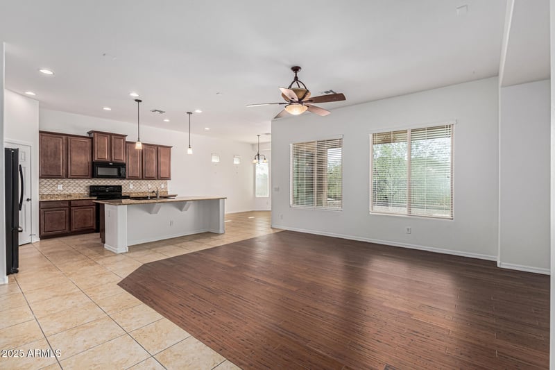 Listing details for 13958 180th Ave, Goodyear, AZ 85338 : Discover this gorgeous single-story home in the sought-after Coronado Village at Estrella Mountain Ranch! Nestled in a prime corner lot in a quiet cul-de-sac, featuring 4 bedrooms plus den, 3 bathrooms, and a 2-car garage. You'll fall in love with the inviting living areas, showcasing wood-look & tile flooring, abundant natural light, and an earthy palette. The impeccable kitchen is a chef's delight, complete with staggered cabinets adorned with crown molding, tile backsplash, spacious counters, built-in appliances, a pantry, and an expansive island with a breakfast bar, perfect for entertaining. The serene main retreat boasts upgraded carpet for added comfort, a lovely bay window, a private exit, a walk-in closet, and a bathroom with double sinks and a separate shower & tub. The den is perfect for an office. Enjoy the beautiful mountain views from the backyard, complete with a cozy covered patio and a nice seating space with pavers. This home is a must-see!