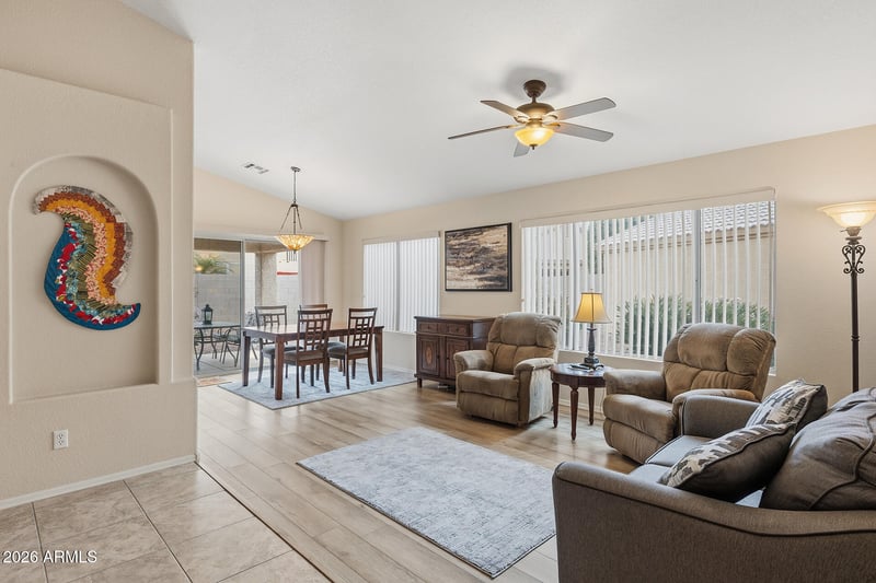 Listing details for 14012 Windsong Trl, Surprise, AZ 85374 : Furnished Artesia model in Beautiful Gated 55+ Sun Village Resort! Many upgrades in this Vaulted Ceiling Spot bedroom plan. Here are just a few.... roof underlayment (2018) HVAC (2025 w/15yr warranty), Laminate flooring, Remodeled Kitchen w/quartz counters, tall bath vanities and counters, Garage door & springs, breakers replaced in electrical panel, fresh gravel in back yard! Located in the Pueblo Village on a cul da sac. Your front yard landscape it taken care of by HOA. Sun Village is a 55+ Gated, Resort Style Community. Enjoy the 18 hole par 3 golf course, gigantic heated pool & spa, pickleball, tennis, fitness gym, woodshop, billiards, onsite entertainment in our ball room and onsite restaurant!Sun Village, is a gated, security guarded, age 55+, community, in the city of Surprise, Arizona. This small community is made up of just under 1400 homes and condominiums. The Sun Village Community has an 18 hole, par three "no-"riding" golf course, an heated swimming pool and spa, tennis, pickle ball and shuffleboard courts, horseshoe pits, an exercise room, a billiards room, sewing and crafts rooms, and a ballroom where national and international entertainment can be enjoyed!