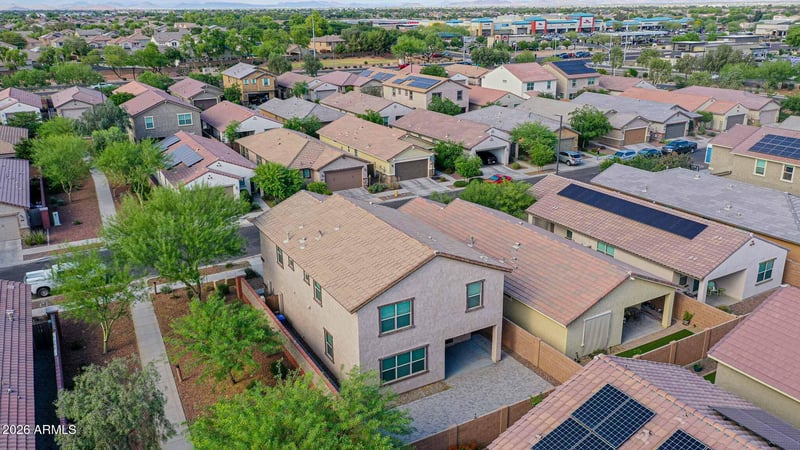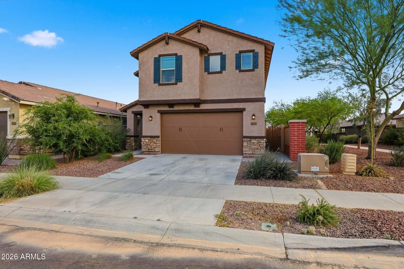 Listing details for 14161 Voltaire St, Surprise, AZ 85379 : Great location in Marley Park! Bordering a walking path and offering access to community pools, parks, and neighborhood amenities. This one-owner home built in 2020 offers a clean, functional layout and is fully move-in ready. The main level features an open floor plan with tile flooring, great natural light, and direct access to the backyard through sliding glass doors. The kitchen includes granite countertops, stainless steel appliances, gas cooktop, pantry, ample cabinetry, and a large island with breakfast bar seating. A half bath is conveniently located downstairs. Upstairs includes a large, versatile loft and all four bedrooms. Each bedroom features its own walk-in closet, providing consistent storage throughout. The laundry room is also located upstairs for added convenience. The primary suite offers a comfortable, functional layout with plenty of usable space. The ensuite bathroom includes dual sinks, a walk-in shower, and a separate toilet room for added privacy. The walk-in closet is oversized and provides ample storage with space for both hanging and shelving. The backyard is complete with a covered patio and a large paver area, offering a low-maintenance outdoor space that is ready to use. 2-car garage. Washer and dryer included. This is a home you don't want to miss. Buyers are to independently verify all information. Some photos are virtually staged.