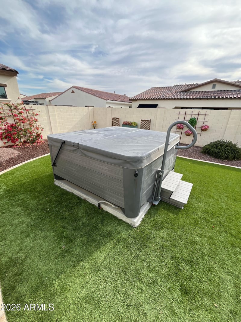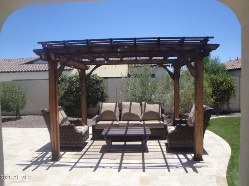 Listing details for 14200 Village Pw #2057, Litchfield Park, AZ 85340 : Community adjacent to Wigwam Resort golf club Heritage or ''Red'' course; linked to golf cart path under Litchfield Rd. plus access to Litchfield Square that will serve as new downtown offering restaurants, retail, and offices. Backyard boasts HotSpring spa, lighted pergola and artificial turf. Chefs' delight kitchen with gas cooktop, quartz counters, custom tile backsplash, new (fridge & dishwasher)/newer appliances, wine fridge, breakfast bar and pantry. Primary bedroom is split with walk in closet, built in vanity nook, double sinks and shower. Golf cart garage/storage; HOA maintains front landscaping.