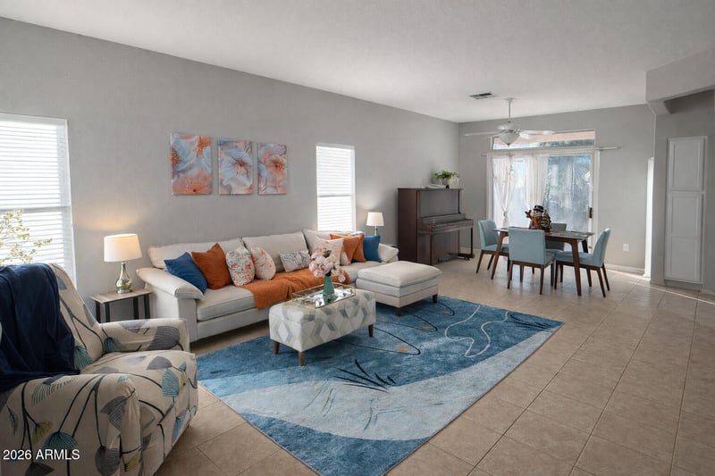 Listing details for 14201 Colt Ln, Sun City West, AZ 85375 : New interior and backyard photos coming soon! Beautifully maintained 2 bed, 2 bath corner‑lot home offering exceptional value in Sun City West. Enjoy great curb appeal, low‑maintenance landscaping, and a 2‑car garage with built‑in cabinets. Inside, an open, light‑filled floor plan features neutral colors and tile flooring throughout. The spacious kitchen includes abundant cabinetry, pantry storage, and built‑in appliances. The primary suite offers a bay window, dual closets, and a private bath. Relax in the inviting backyard with a covered patio and sparkling pool—ideal for warm Arizona days. Located near top community amenities including golf, tennis, fitness centers, and recreation. A fantastic opportunity to own a move‑in‑ready home in a p