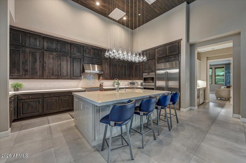 Two expansive guest suites provide privacy and comfort, while a dedicated office overlooking the courtyard offers an inspiring work-from-home setting. The primary suite, privately positioned at the rear of the home, captures stunning mountain views and features dual walk-in closets and a spa-inspired bath designed for relaxation and luxury.