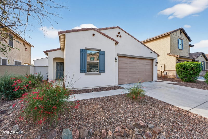 Listing details for 14217 Pershing St, Surprise, AZ 85379 : Beautiful 6-yr-old, 4-bed, 2-bath,1,915 sqft, single-story, smart home. Community has clubhouse, pool, sport courts, firepits, dog park,fitness center & play areas all included in HOA fees. New carpet in 2025, 2'' blinds,smart ceiling fans & recessed lighting. Kitchen w/stainless steel appliances, gas range,large island with breakfast bar,RO system,granite counters,tile backsplash, staggered cabinets. Dual pantries-both walk-in & a custom-made cabinet.Primary suite has a walk-in closet & private ensuite bathroom w/new flooring 2025. 3 additional bedrooms ideal for family, guests, or a home office. Water softener. Low-maintenance backyard with turf, extended concrete patio & Alumawood pergola- perfect for relaxing or entertaining. 2-car garage w/attached garage cabinets & overhead storage.