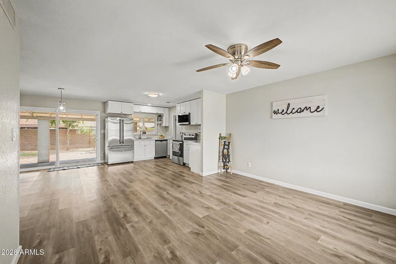Listing details for 1425 Wickieup Ln, Phoenix, AZ 85027 : NO HOA & Pool! r/v gate with side yard great for trailer or toys. New paint, flooring, windows, A/C and more! Discover this adorable renovated 3-bedroom 2 bath home. Convenient carport parking with side door to Inside. You'll find a spacious great room with wood-look flooring, abundant natural light, and a soothing palette that makes you want to stay. The pristine kitchen comes equipped with shaker-style cabinets, and stainless steel appliances. The serene main bedroom hosts a private bathroom for added comfort. The backyard includes an extended covered patio perfect for gatherings and relaxation, plenty of space for outdoor fun, storage, or your dream garden, and a sparkling pool to enjoy Arizona's weather! Hurry up, this gem won't last