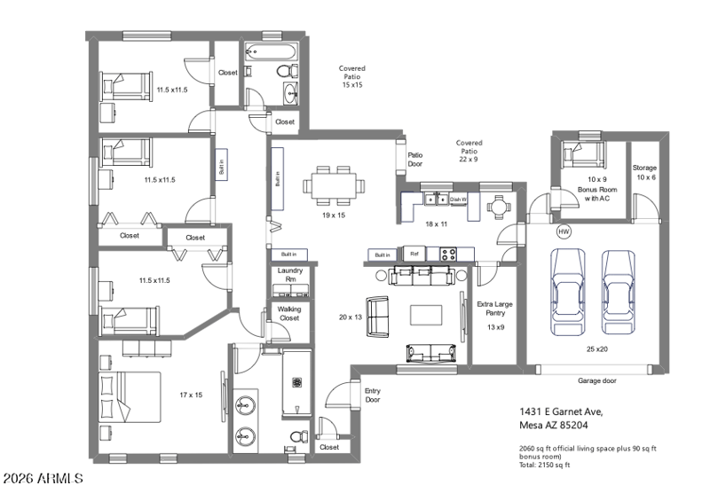 1431 Garnet Ave, Mesa, AZ 85204 and is listed for sale at $535,000.00. This home was built in 1975, contains 2060 square feet of living space, and sits on a 0.23 acre lot. This residential home is priced at $259.71 per square foot.